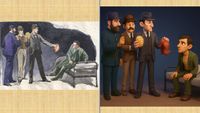 Como es habitual, Holmes pasa la noche meditando y atando cabos, hasta que logra desentrañar una sorprendente verdad que desafía las apariencias y revela una vida doble que nadie habría imaginado.